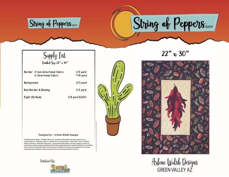 String of Peppers Quilt Pattern - An Arlene Walsh Design, Southwest Pattern, Fused Applique