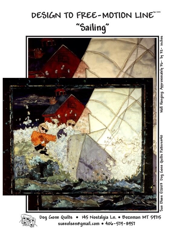 Sailing Quilt Panel, Approximately Size 36” x 32”, Design to Free-Motion Line from Dog Gone Quilts