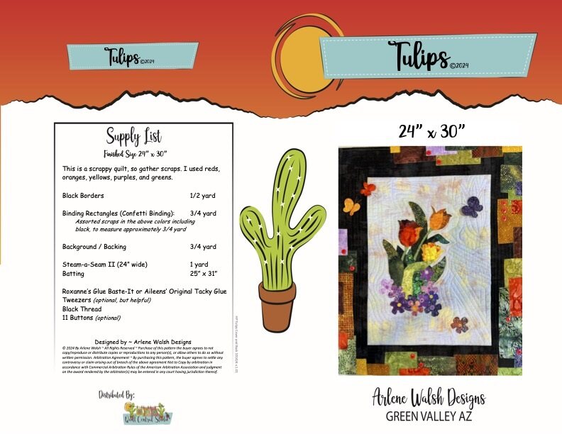 Tulips Quilt Pattern - An Arlene Walsh Design, Southwest Pattern, Fused Applique