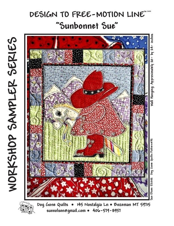 Sunbonnet Sue Quilt Pattern, Approximately Size 20” x 24”, Design to Free-Motion Line from Dog Gone Quilts