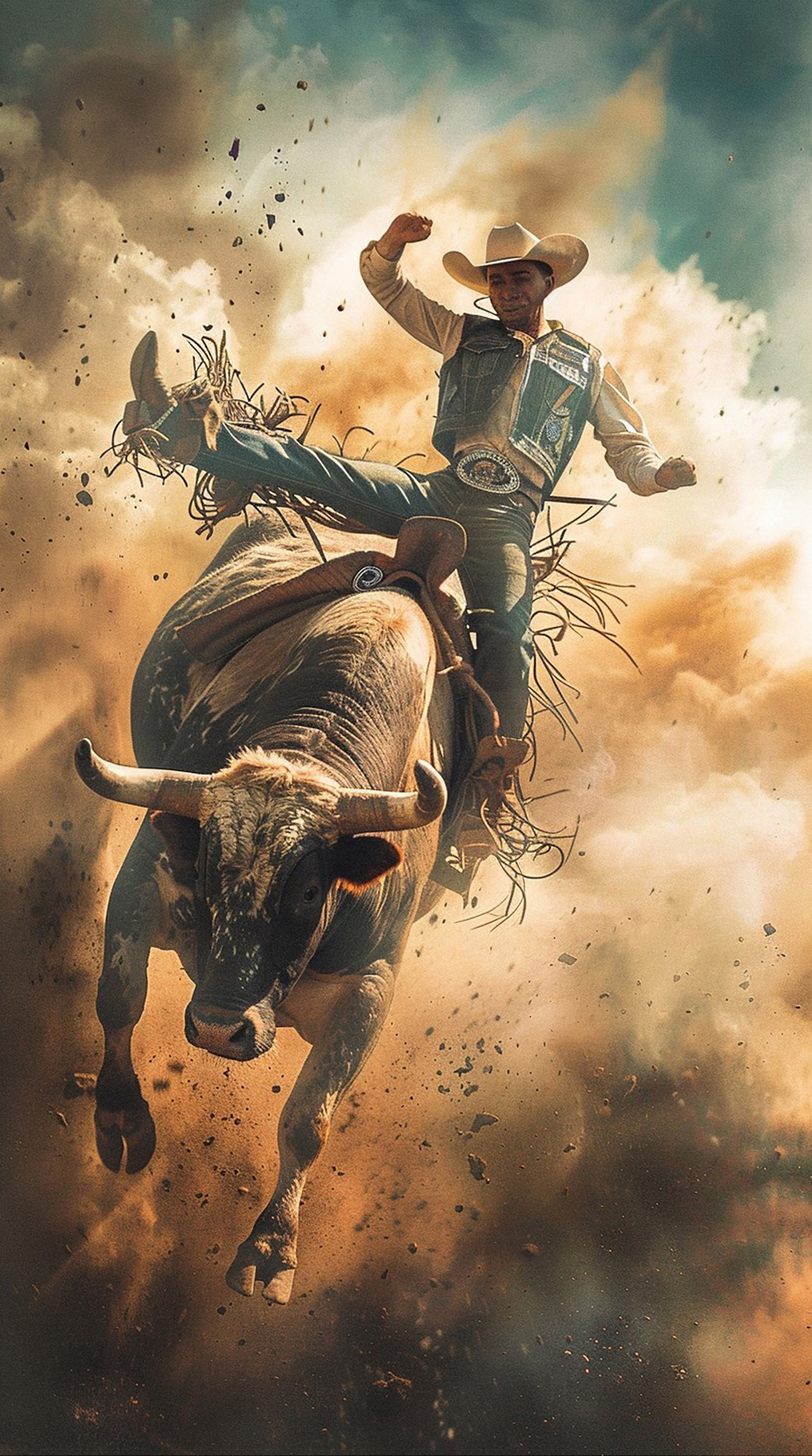 Small Animated Bull Rider Fabric Panel - CBY-024